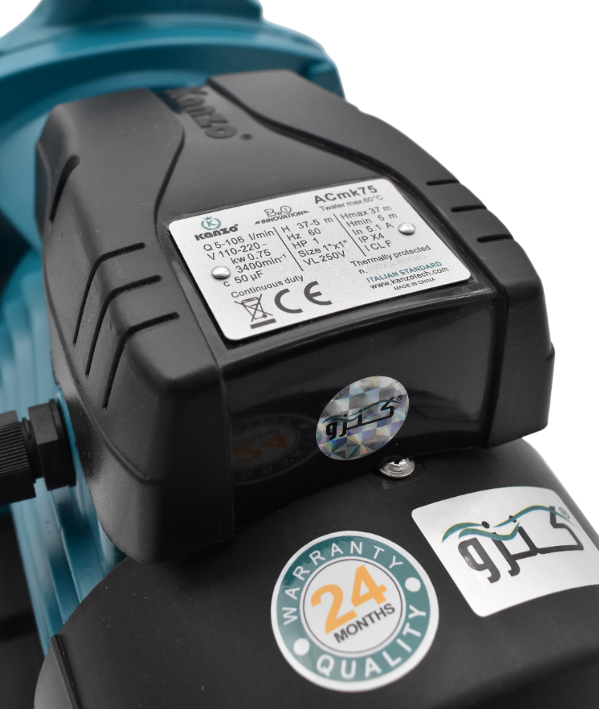 KANZO ACmk75 DV Centrifugal Pump (1 HP) can transfer clean water or other liquids like water in physical and chemical properties. It’s suitable for industrial use and urban water supply, pressure boosting for high buildings and firefighting, garden irrigation, long-distance water transfer, heating ventilation and air conditioning, circulation and pressure boosting for hot and cold water or supporting equipment etc.