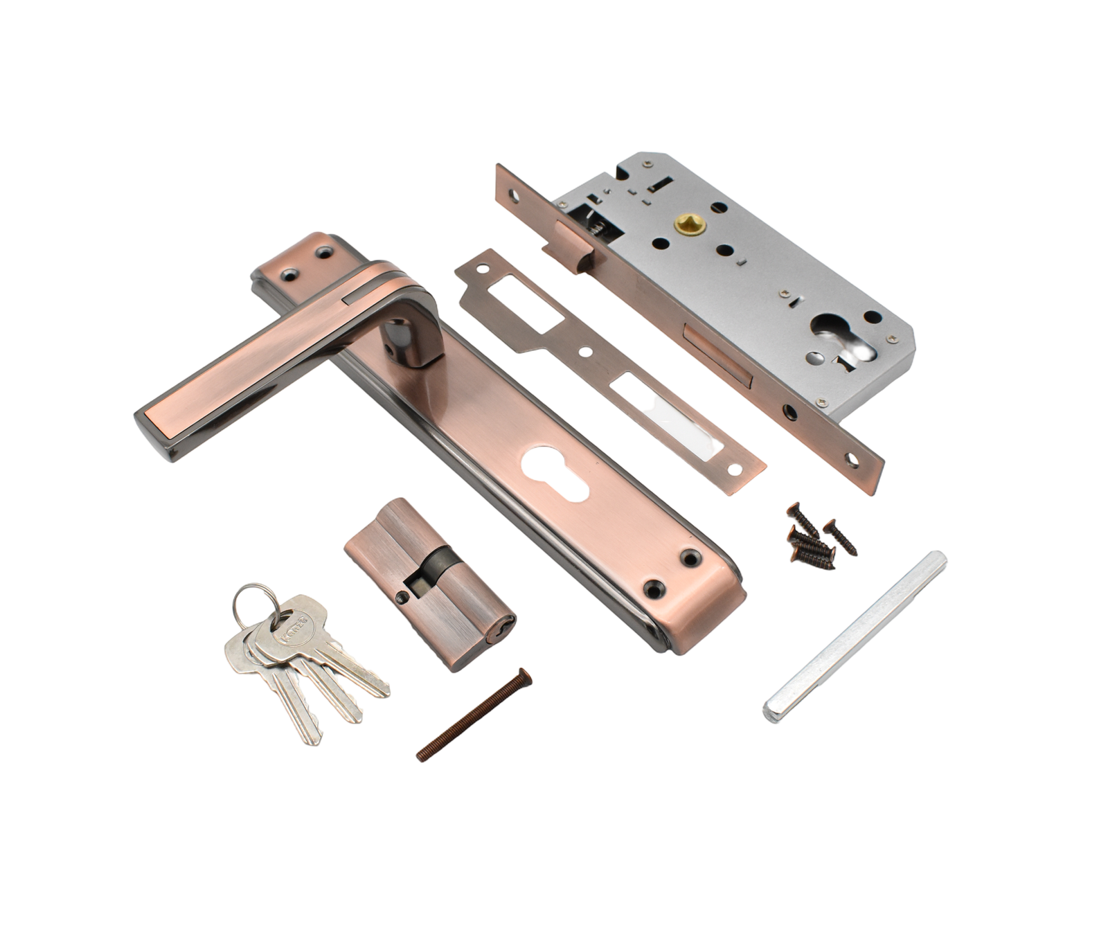 KANZO ACK-1 Door Lock Set is designed to provide secure and convenient access control for your home or office. This lock set ensures maximum security and peace of mind. Experience unparalleled security and convenience with our Door Lock Set, featuring a sleek door handle, robust lock body, and high-security cylinder and key. This premium set provides a complete locking solution for your home or office, with its premium quality and comprehensive features, you can trust your property is protected.