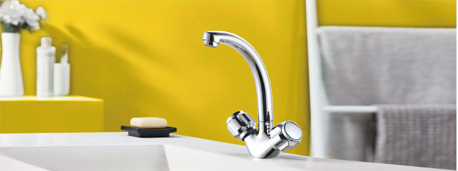 Double Handle Deck Mounted Kitchen Sink Mixer