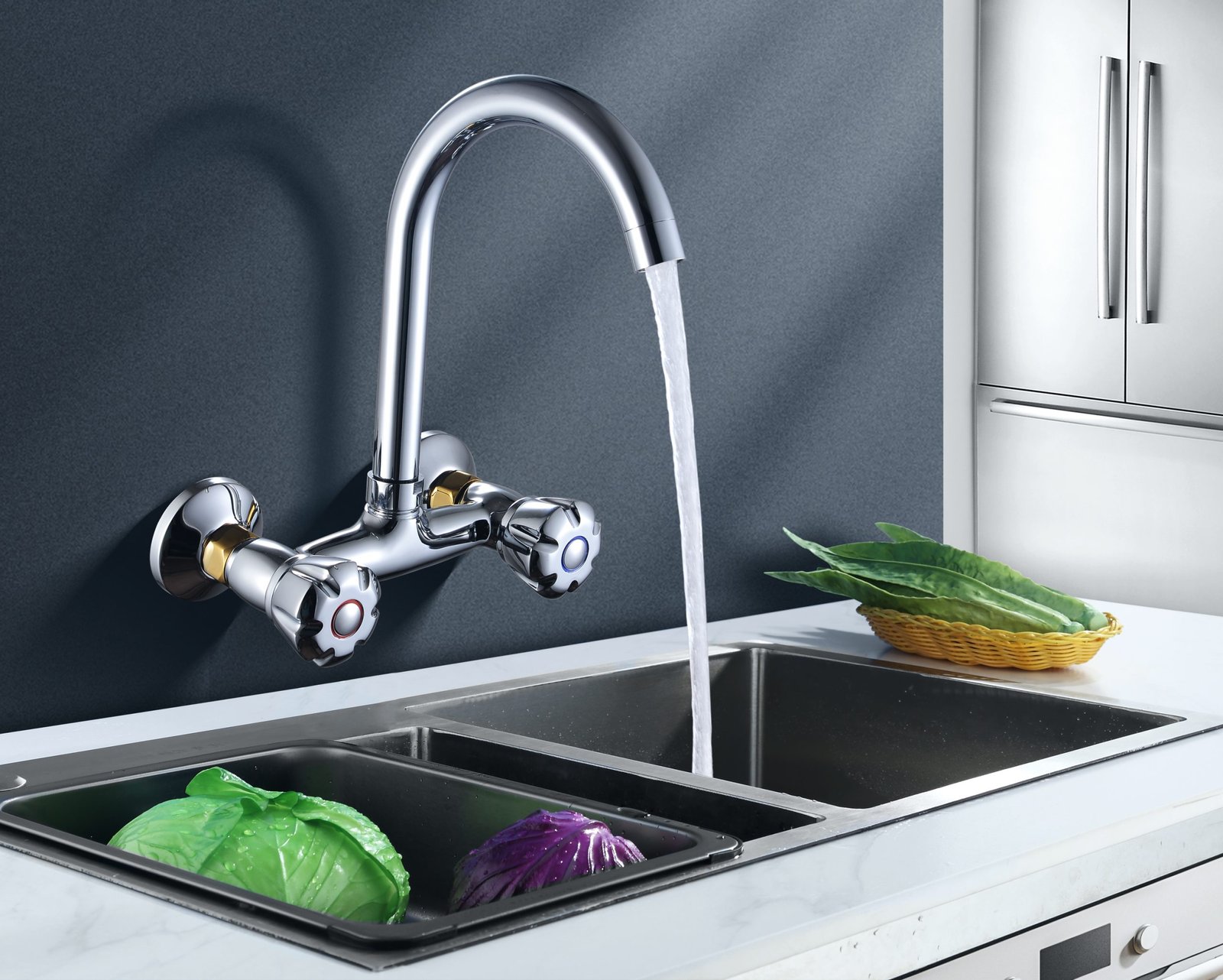 Double Handle Wall Mounted Big Kitchen Mixer