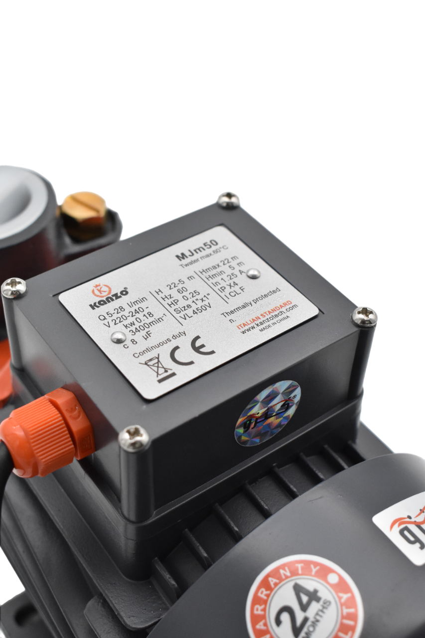 KANZO Mjm50 (0.25 HP) can transfer clean water or other liquids like water in physical and chemical properties. It's suitable for small living water supply, automatic water sprinkle system, small air conditioner system or supporting equipment etc.